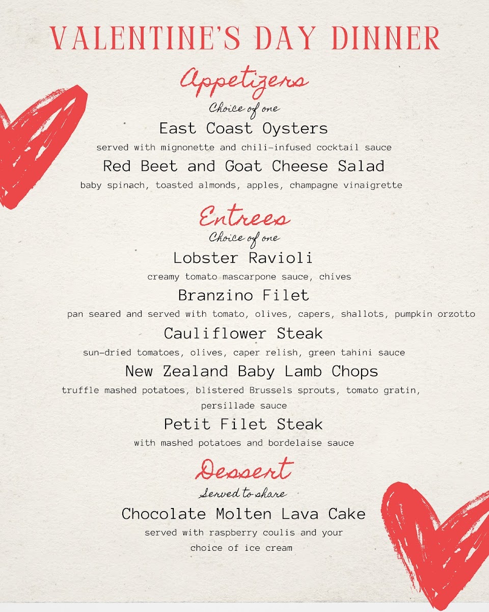 Four Course Festive Dinner Choose Soup: Pumpkin Soup or Lentil Soup Roast Turkey with vegetable stuffing, cranberry sauce, gravy and mashed potatoes Choose Side: String Beans with Almonds, Market Vegetables or Mix Greens Salad Choose Dessert...